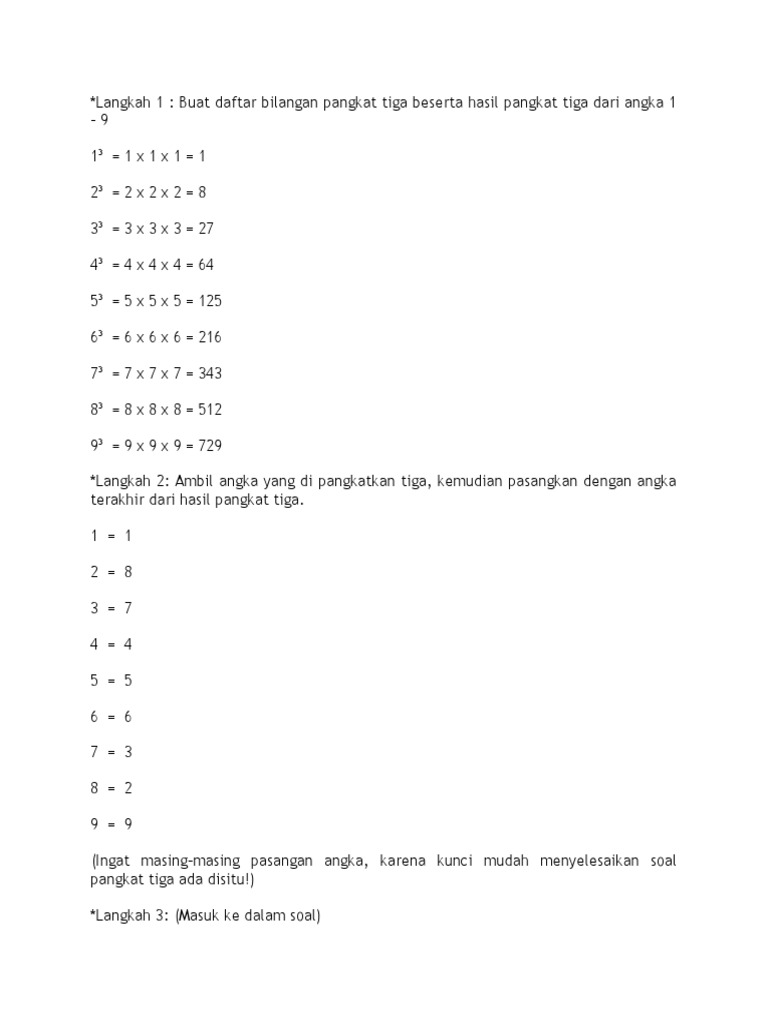 Apakah akar pangkat tiga dari bilangan bulat? Akar pangkat n dari x adalah: Sehingga dapat ditulis ³√x = y dan dibaca akar pangkat tiga dari x sama dengan y. Hasil dari akar pangkat 3 dari 729 adalah. Cara mencari dan menghitung akar pangkat tiga. Akar pangkat 3 adalah kebalikan dari perpangkatan 3 atau invers dari perpangkatan 3. Dengan cara menghitung untuk lebih jelasnya lihat contoh satuan hasil perpangkatan 3 dari bilangan 0 sampai 9 di bawah ini: Nilai akar pangkat tiga suatu bilangan x adalah y dimana berlaku x = y³, dengan x dan y bilangan real. Materi pelajaran matematika kelas.6 sd/mibab 1. Bagaimana cara menghitung akar pangkat tiga? Hapus 3 angka dari belakang 3, 2, dan 8, hanya tersisa ratusan ribu, atau 103. Dengan memperhatikan hasil pangkat tiga pada langkah 1, tentukan perkiraan letak bilangan yang ditarik akarnya. 24+ cara mencari akar pangkat 3 tanpa menggunakan kalkulator madematika pics.