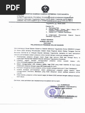 Se Presensi Online Mandiri Pdf from imgv2-2-f.scribdassets.com Acara rapat di pimpin oleh kasubag porgram dan monev bapak bernardinus norowisnu, s.kom,m.hum. Badan kepegawaian daerah daerah istimewa yogyakarta merupakan lembaga kepegawaian yang ada di wilayah provinsi daerah istimewa yogyakarta yang merupakan perkembangan dari lembaga kepegawaian yang ada sebelumnya. Demikian, atas perhatian dan kerjasamanya diucapkan terima kasih. Zona waktu server adalah zona waktu indonesia bagian barat. Aturan yang dikeluarkan terkait dengan kewajiban pengantongan izin penjualan hewan kurban, pendataan dan pendaftaran penyembelihan kurban yang dilakukan secara mandiri oleh masyarakat, serta pelaksanaan ibadah salat idul adha. Rabu 24/02/2021 21:00 wib perpanjangan pemberlakuan pembatasan kegiatan masyarakat berbasis mikro di kota yogyakarta opd. Gimana sih isolasi mandiri di rumah yang baik dan benar sesuai prosedur. Selamat datang di web inspektorat pemerintah daerah, daerah istimewa yogyakarta.